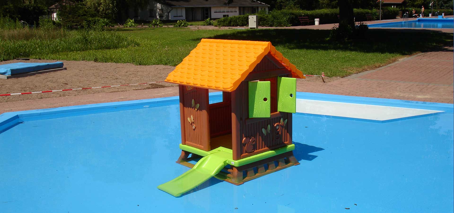 Im Freibad Vacha wurde im Jahr 2009 das längst veraltete Planschbecken komplett saniert. Um auch den Kindern in Vacha und der Umgebung ein attraktives Badevergnügen zu bieten, hat man sich entschlossen, ein 6-Form-Becken zu errichten. Auf Grundlage einer stahlarmierten Betonbeckenkonstruktion wurde adriablaue Schwimmbadfolie verlegt und entsprechende Einbauteile für eine Längsdurchströmung installiert. Mittels Natriumhypochlorit erfolgt die kontinuirliche Desinfektion des Beckens.